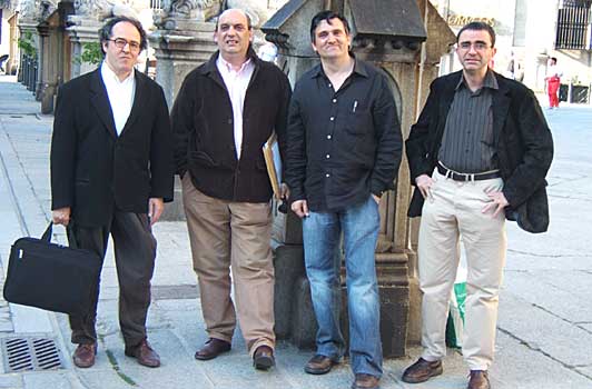 D'esquerra a dreta, els poetes Josep Gerona, José María Muñoz Quirós, Esteban Martínez i Josep Maria Ripoll a la ciutat d'Àvila.