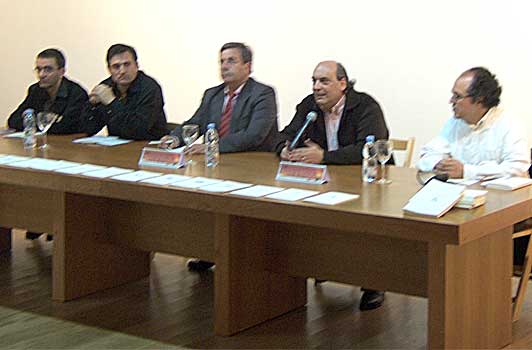 El poeta José María Muñoz Quirós es dirigeix al públic assistent en un moment de la presentació. L'acte va comptar amb la presència d'Aureo Martín, Regidor de Cultura d'Àvila.