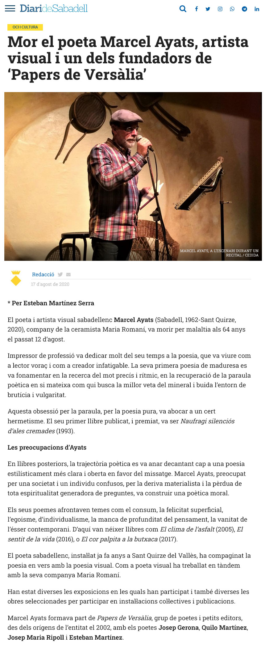 Publicat a Diari de Sabadell, el 17 d'agost de 2020.