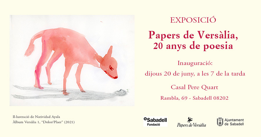 Desde el jueves 20 de junio hasta el martes 9 de julio se podrá visitar en el Casal Pere Quart de Sabadell la exposición «Papers de Versàlia, 20 anys de poesia», que explica la trayectoria y las publicaciones del grupo, que fue presentada el año pasado en La Pahissa del Marquet de les Roques, en la Vall d'Horta.